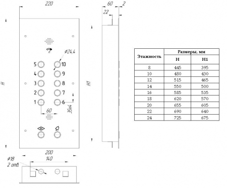| Вид кнопок | круглые пьезокнопки IP68 с кольцевой индикацией |
